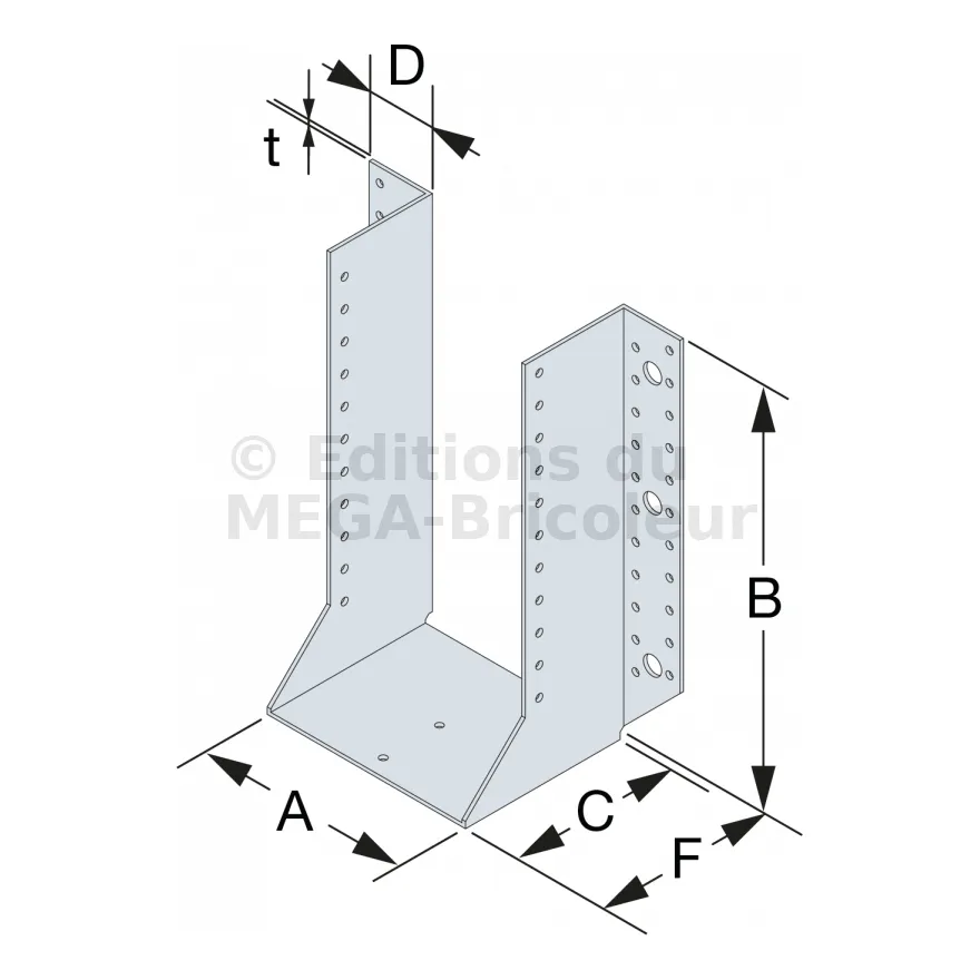 Les sabots GSE en acier galvanisé offrent une flexibilité grâce à des largeurs au choix selon les plages indiquées. Cette caractéristique permet de s’adapter parfaitement aux dimensions spécifiques des éléments de construction, garantissant une compatibilité optimale et une fixation stable.
