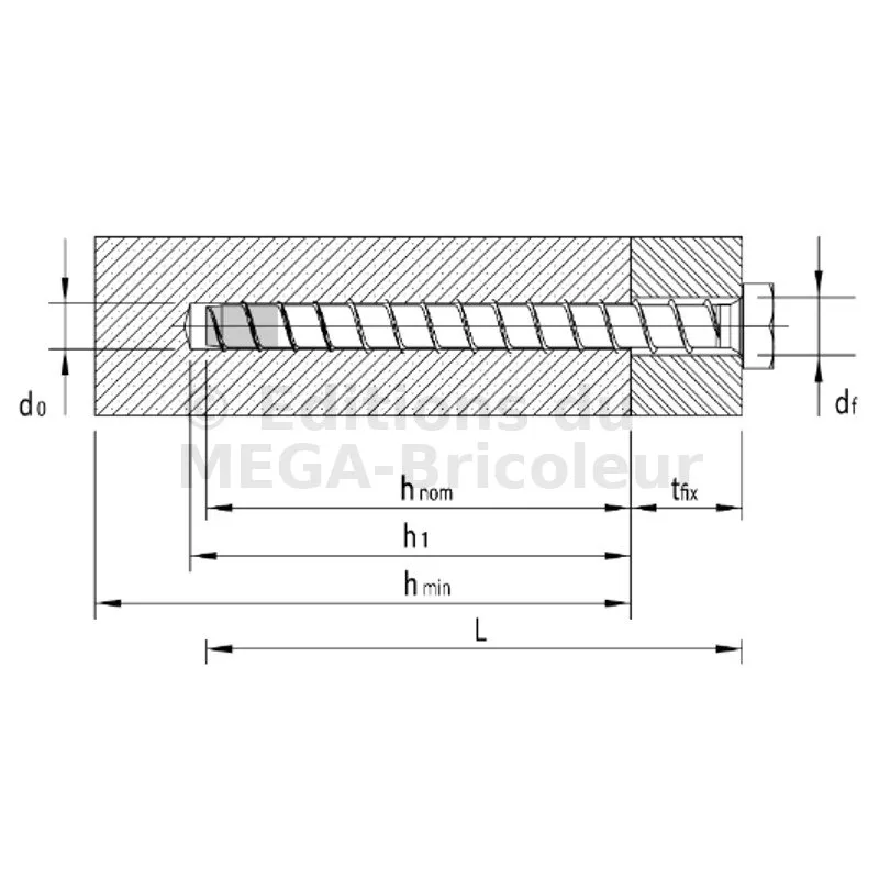 - Prof. d’ancrage nominal [hnom]75mm