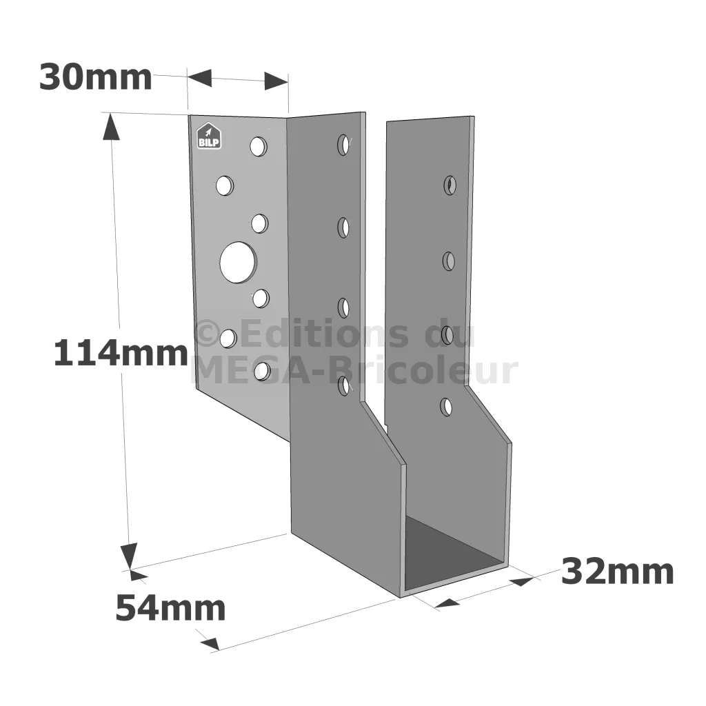 Sabots à ailes extérieures, gamme SBE ECONOMIQUE (épaisseur 1,5mm, profondeur 55mm) - Réf. SBE32/114