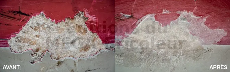 - Attention de ne pas incorporer le restant du mélange mastic/durcisseur dans le pot de mastic pur.