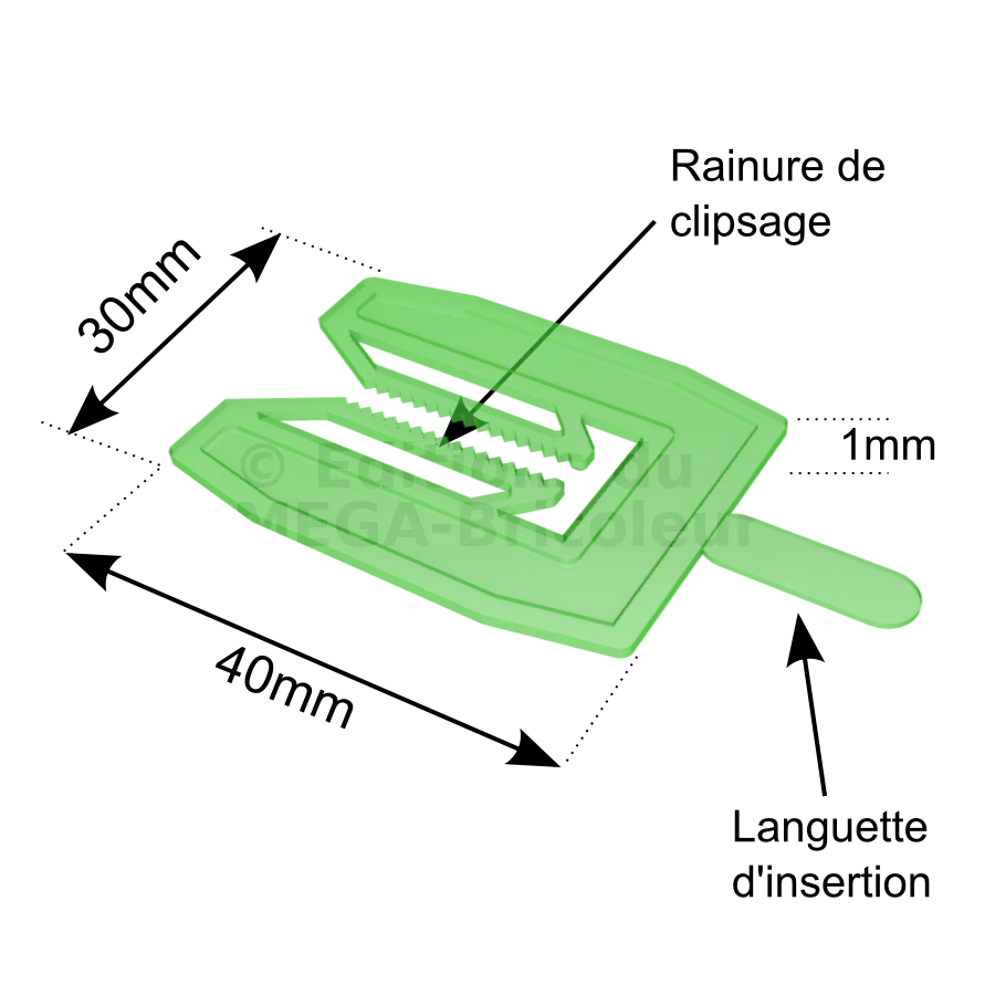 UNE CALE BIEN CALÉE : de part sa forme, la cale fourchette est bien maintenue en place, elle ne bouge plus, contrairement aux cales pleines rectangulaires. Car elle présente une rainure en son centre qui permet de la clipser sur une vis de diamètre 4 à 6mm, avec une parfaite superposition des cales. Dans le cas de l’utilisation d’un ensemble vis et cheville, le diamètre maximum peut être de 12mm.