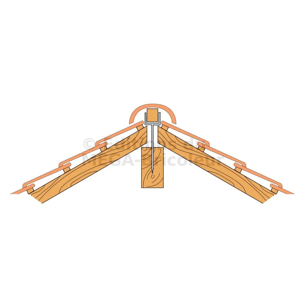 Le support de faîtage RB permet de remplacer les lisses de rehausses nécessaires à la ventilation de toiture. Il se cloue directement sur la poutre faîtière, ce qui facilite le réglage final.