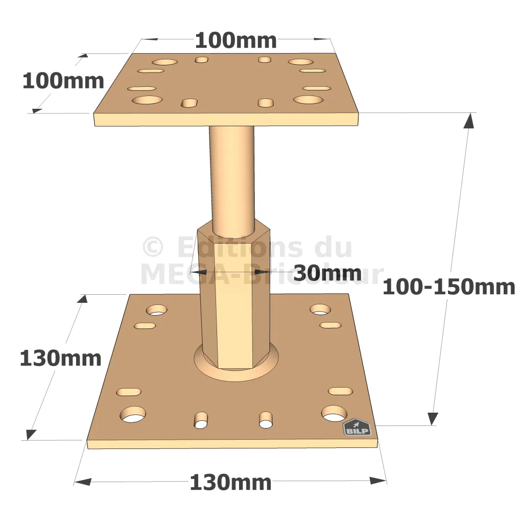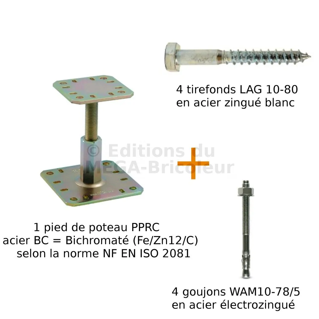 Pieds de poteau réglables en HAUTEUR - Réf. KIT FIX PPRC