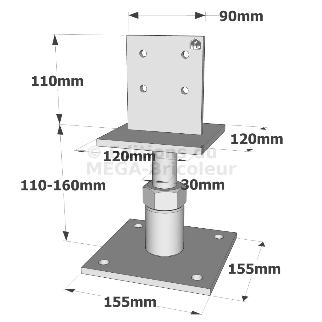 Pied de poteau réglable forte charge - Réf. PIBA110/160
