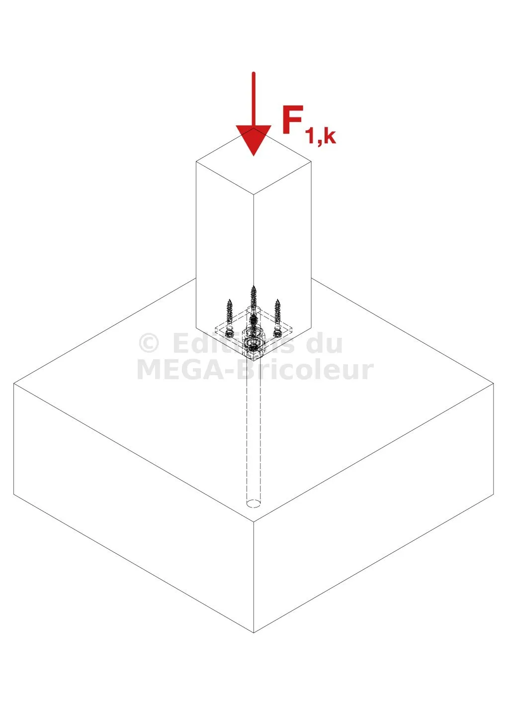 - La longueur des broches correspond à la section du poteau.