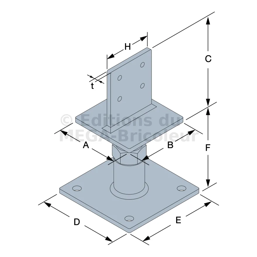 Pied de poteau réglable forte charge
