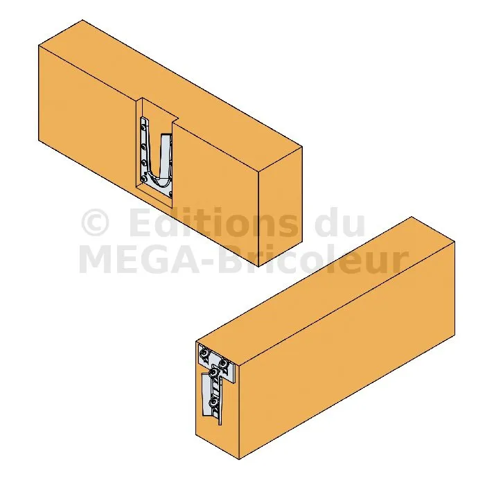Il est recommandé d’utiliser un gabarit pour la pose de la partie mâle afin d’éviter que la pièce glisse lors de la pose des vis inclinées.