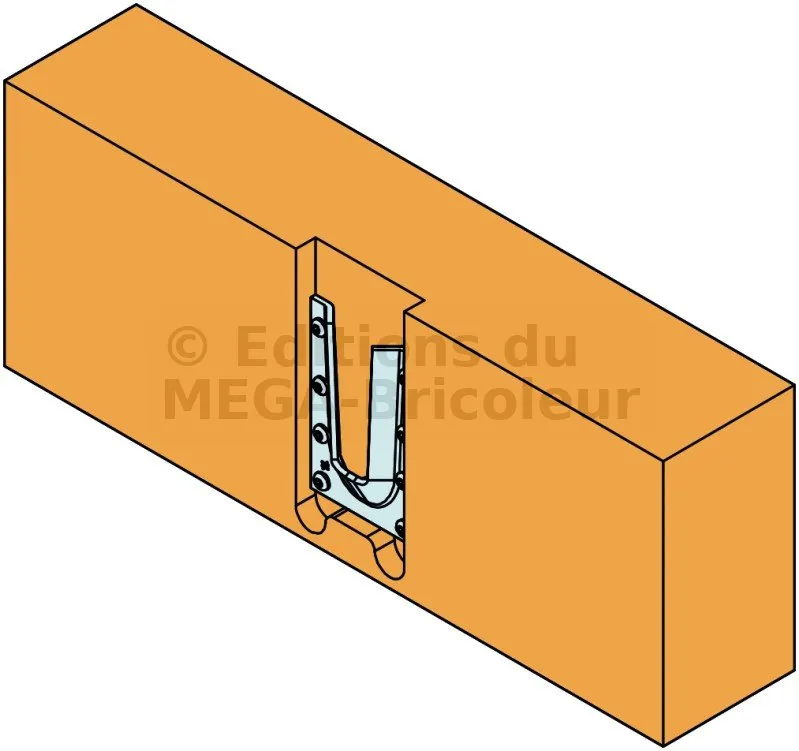 L’étrier à queue d’aronde en acier ETSN est un connecteur innovant et très discret. Il permet de reproduire l’esthétique d’un assemblage traditionnel à queue d’aronde. La partie femelle est placée sur la poutre porteuse avec des vis CSA ou des pointes CNA, tandis que la partie mâle est fixée à l’extrémité de la poutre portée avec les vis à tête plate.