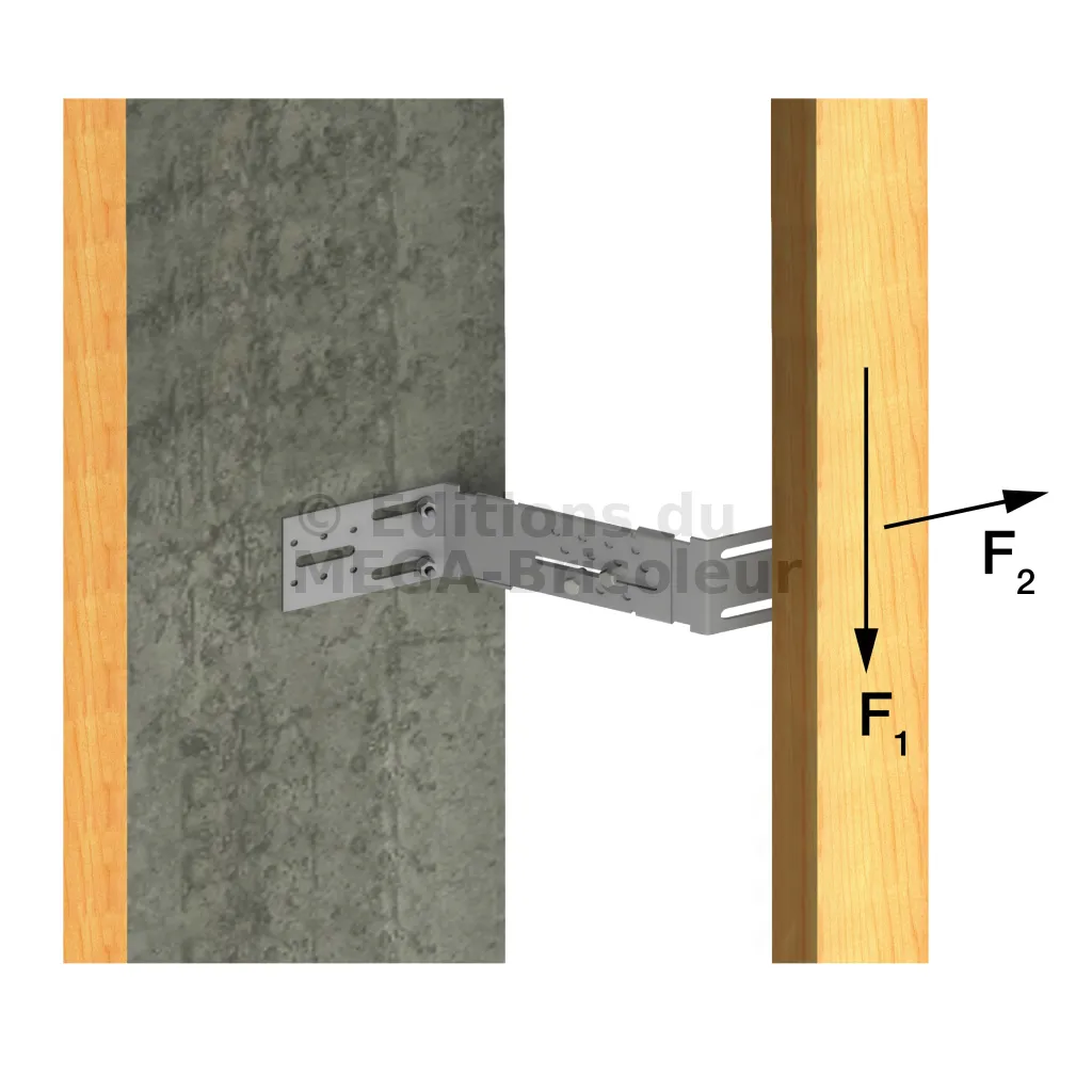 - Chevron d’angle bois : 1 tirefond LAG08050 + 2 vis anti-rotation CSA5,0X40