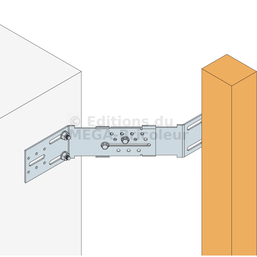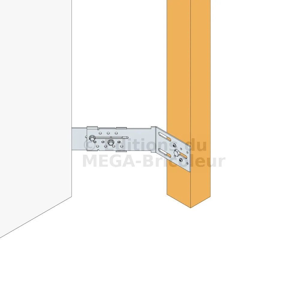 L’équerre AB45C est utilisée lors de la réalisation d’isolation par l’extérieur des façades. Elle maintient le chevron d’angle dans le cas d’un angle sortant entre les murs.