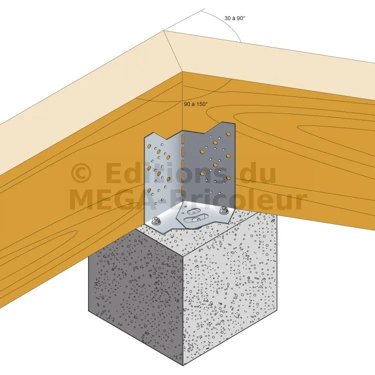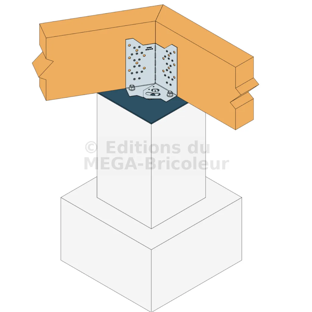 - Fixation de poutre bois (lamellé collé, bois massif...) de hauteur 235 à 310 mm sur plots béton,