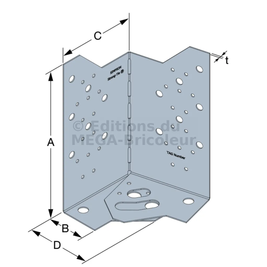 Équerre réglable pour dalle bois - Fixation poutre bois de hauteur 235 à 310mm - Réf. ABF230