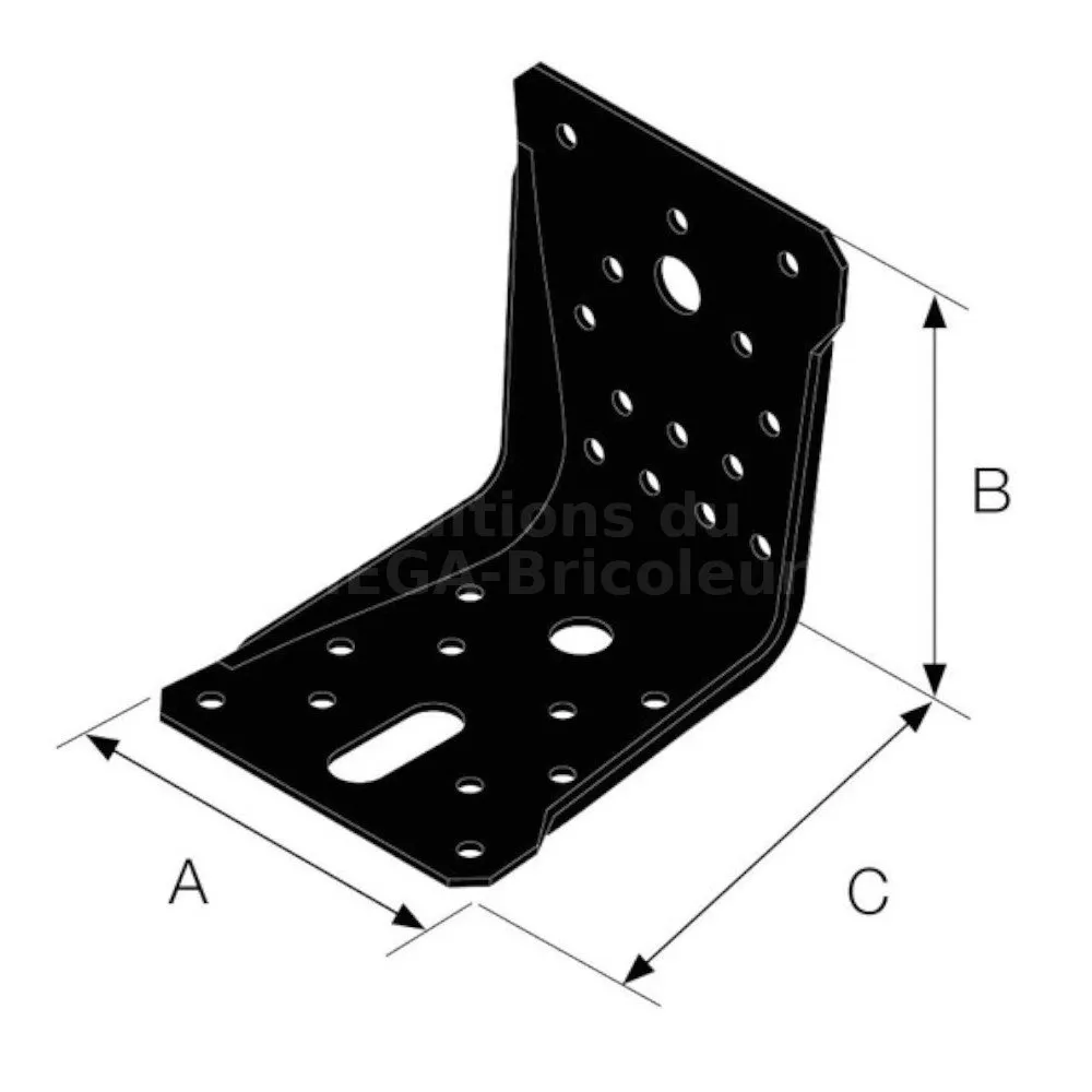 L’ABR100PB est une équerre renforcée, de finition noire, qui répond à des applications structurelles sur un support bois ou sur béton.