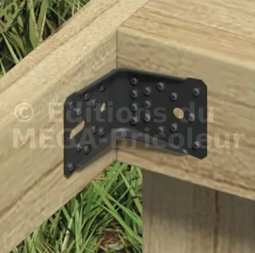 Connexion bois/support rigide type poutre/ support rigide - Assemblage avec 2 équerres