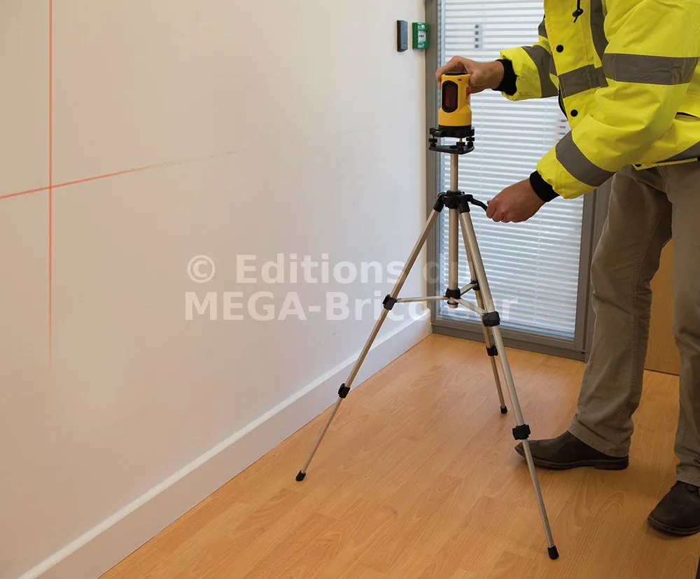 Système de montage autonivelant garantissant une mise au point précise. La tête laser est rotative sur 360° pour une lecture continue du niveau.