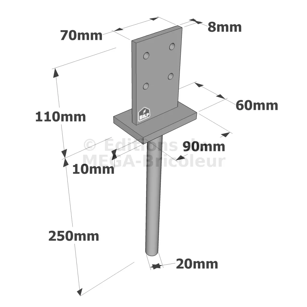 Le PIG est utilisé pour ancrer et protéger les poteaux du pourrissement. Il doit être scellé dans le béton.