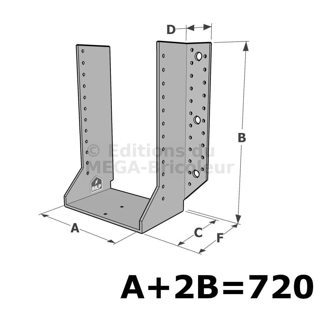 Grands sabots à ailes extérieures, gamme GSE CLASSIQUE (épaisseur 4mm, profondeur 110mm) - Réf. GSE720/4X-AL