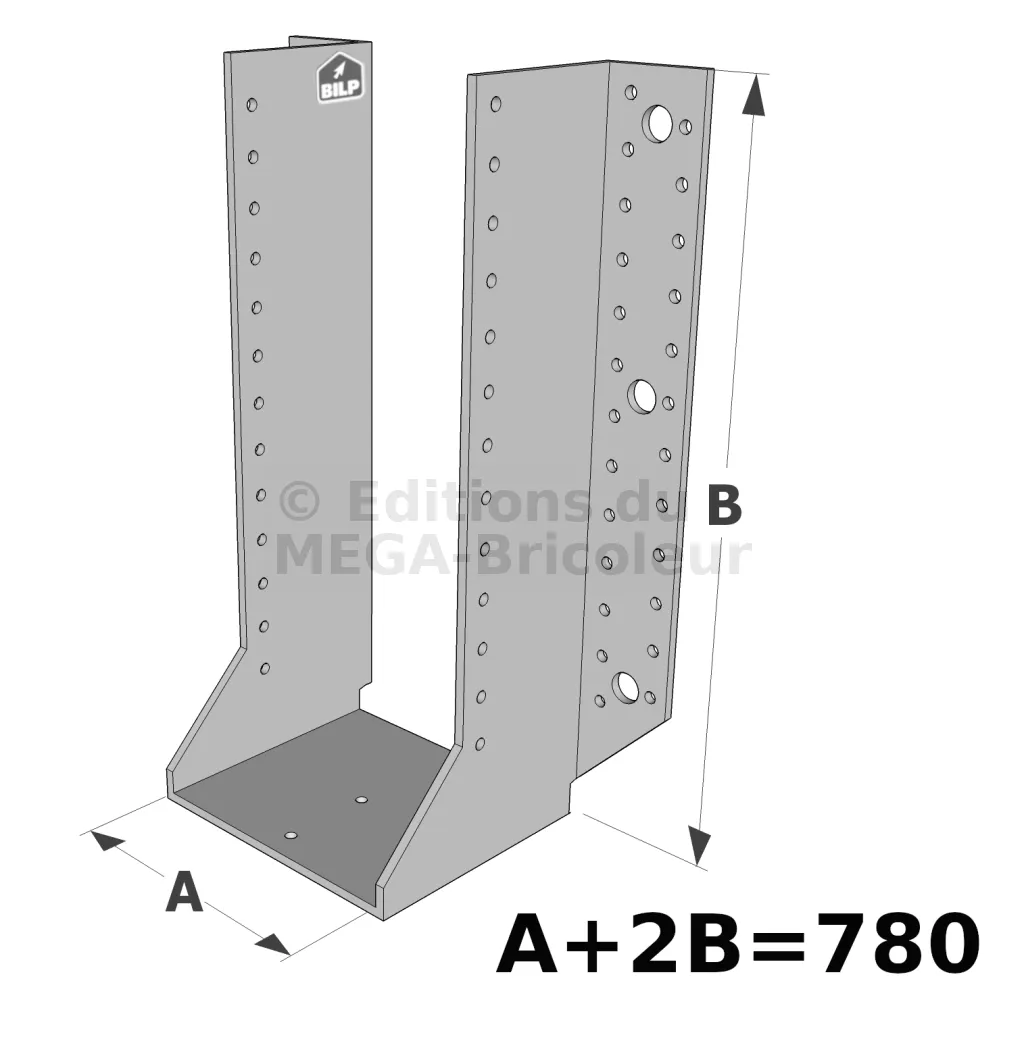 Grands sabots à ailes extérieures, gamme GSE CLASSIQUE (épaisseur 4mm, profondeur 110mm) - Réf. GSE780/4X