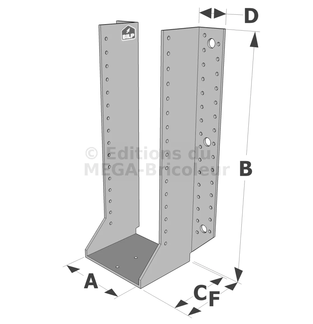 Les sabots GSE en acier galvanisé offrent une flexibilité grâce à des largeurs au choix selon les plages indiquées. Cette caractéristique permet de s’adapter parfaitement aux dimensions spécifiques des éléments de construction, garantissant une compatibilité optimale et une fixation stable.