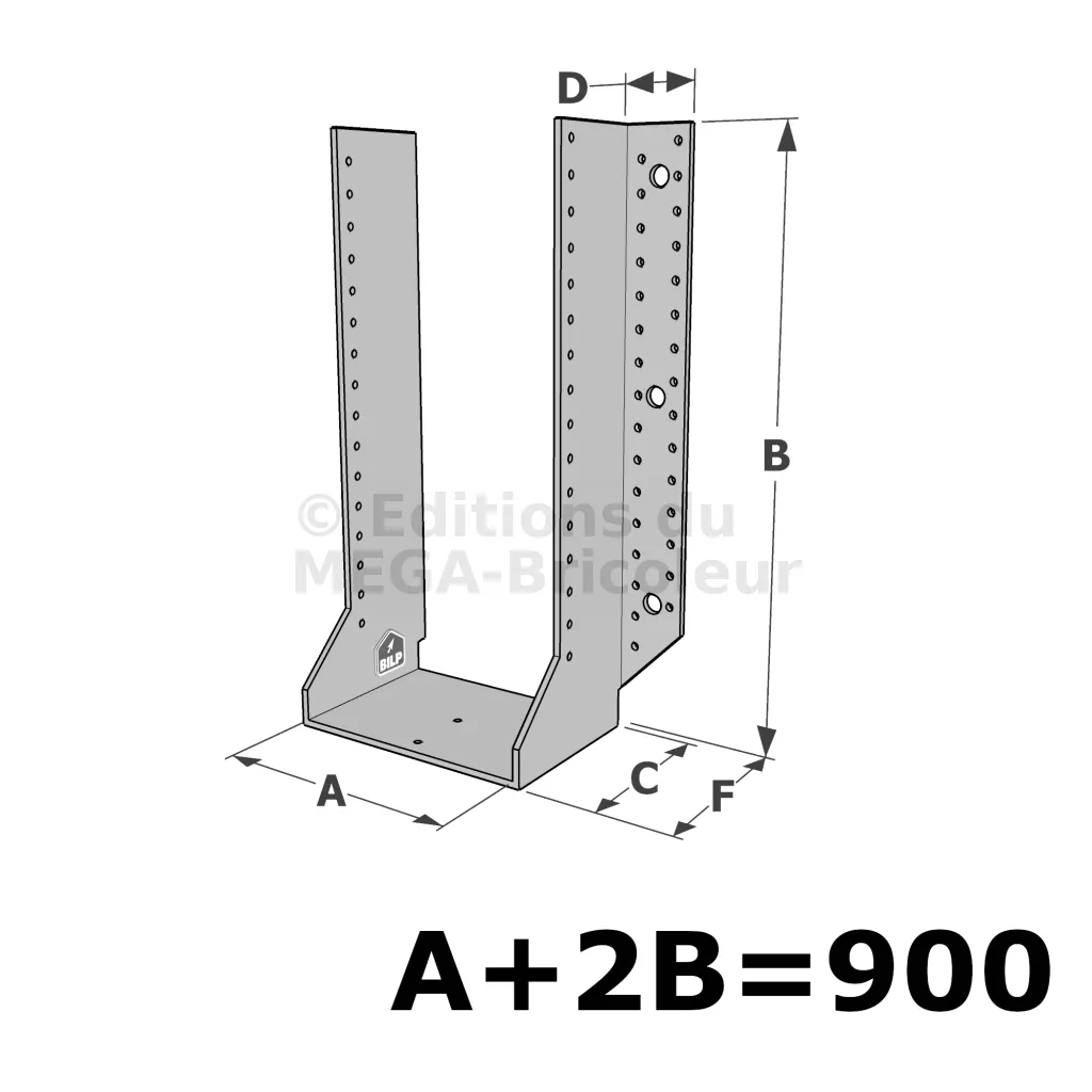 Grands sabots à ailes extérieures, gamme GSE CLASSIQUE (épaisseur 4mm, profondeur 110mm) - Réf. GSE900/4X-AL