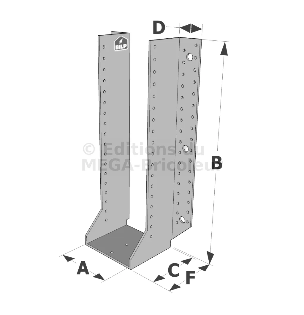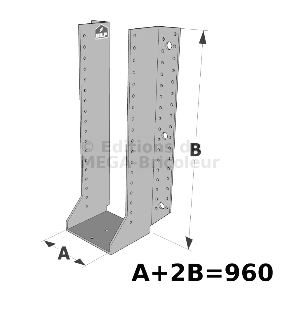 Les sabots GSE en acier galvanisé offrent une flexibilité grâce à des largeurs au choix selon les plages indiquées. Cette caractéristique permet de s’adapter parfaitement aux dimensions spécifiques des éléments de construction, garantissant une compatibilité optimale et une fixation stable.