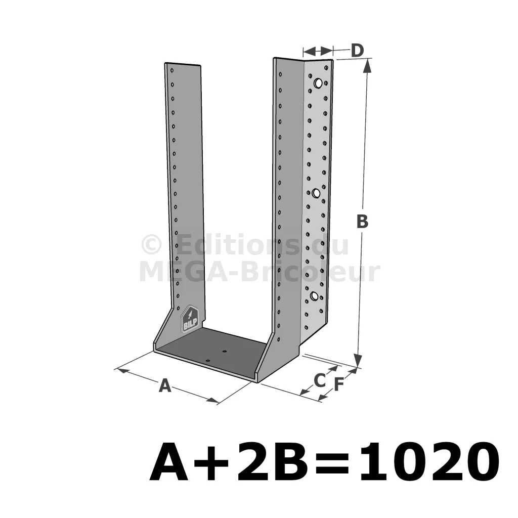 Les sabots GSE en acier galvanisé offrent une flexibilité grâce à des largeurs au choix selon les plages indiquées. Cette caractéristique permet de s’adapter parfaitement aux dimensions spécifiques des éléments de construction, garantissant une compatibilité optimale et une fixation stable.