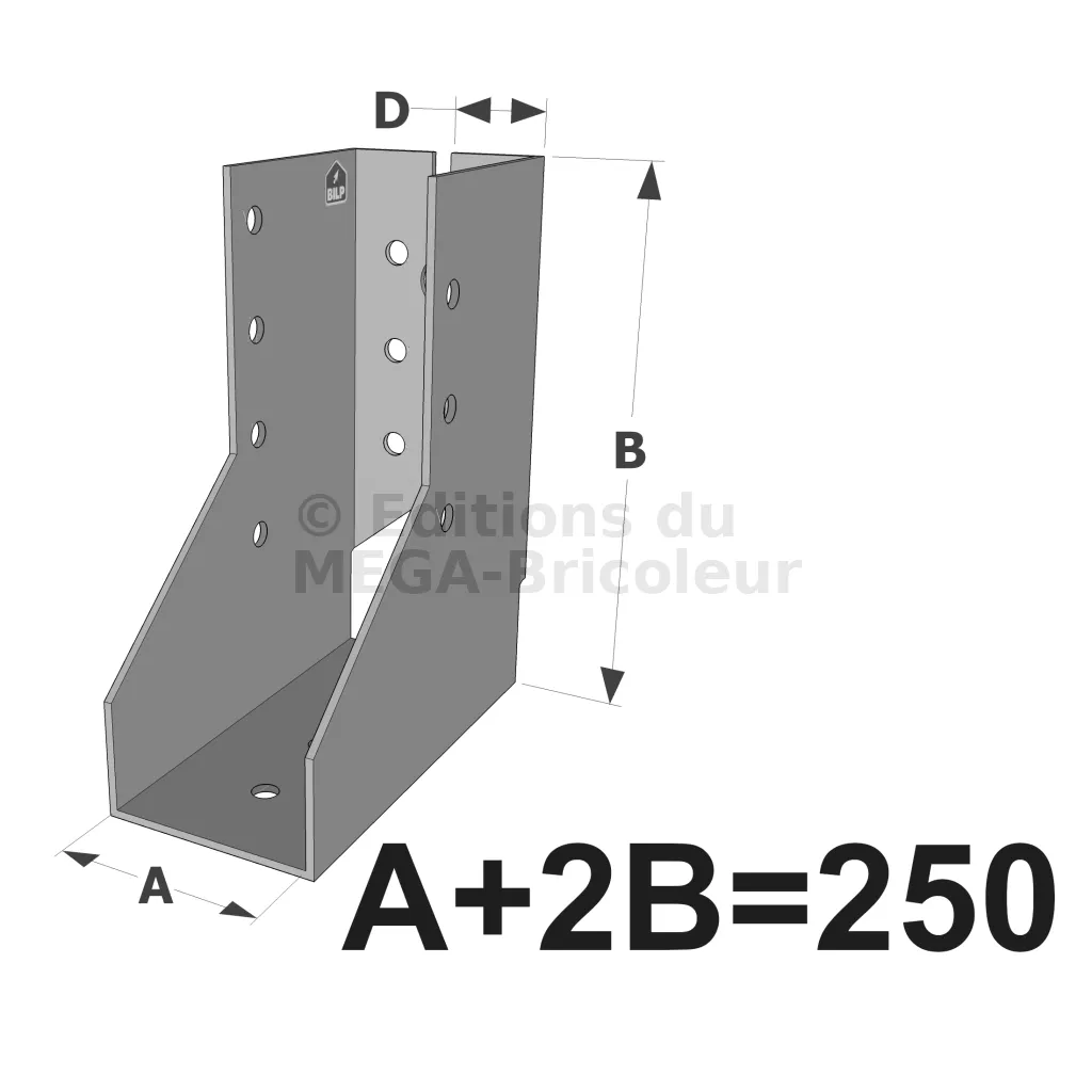 Attention, pour les sabots SAIX à ailes intérieures de largeurs inférieures à 80 mm, les ailes sont recoupées sur la hauteur dans l’axe des perçages de boulons. La fixation sur le porteur est donc uniquement possible par pointes ou vis dans la ligne verticale de perçages Ø5 proche du pli.