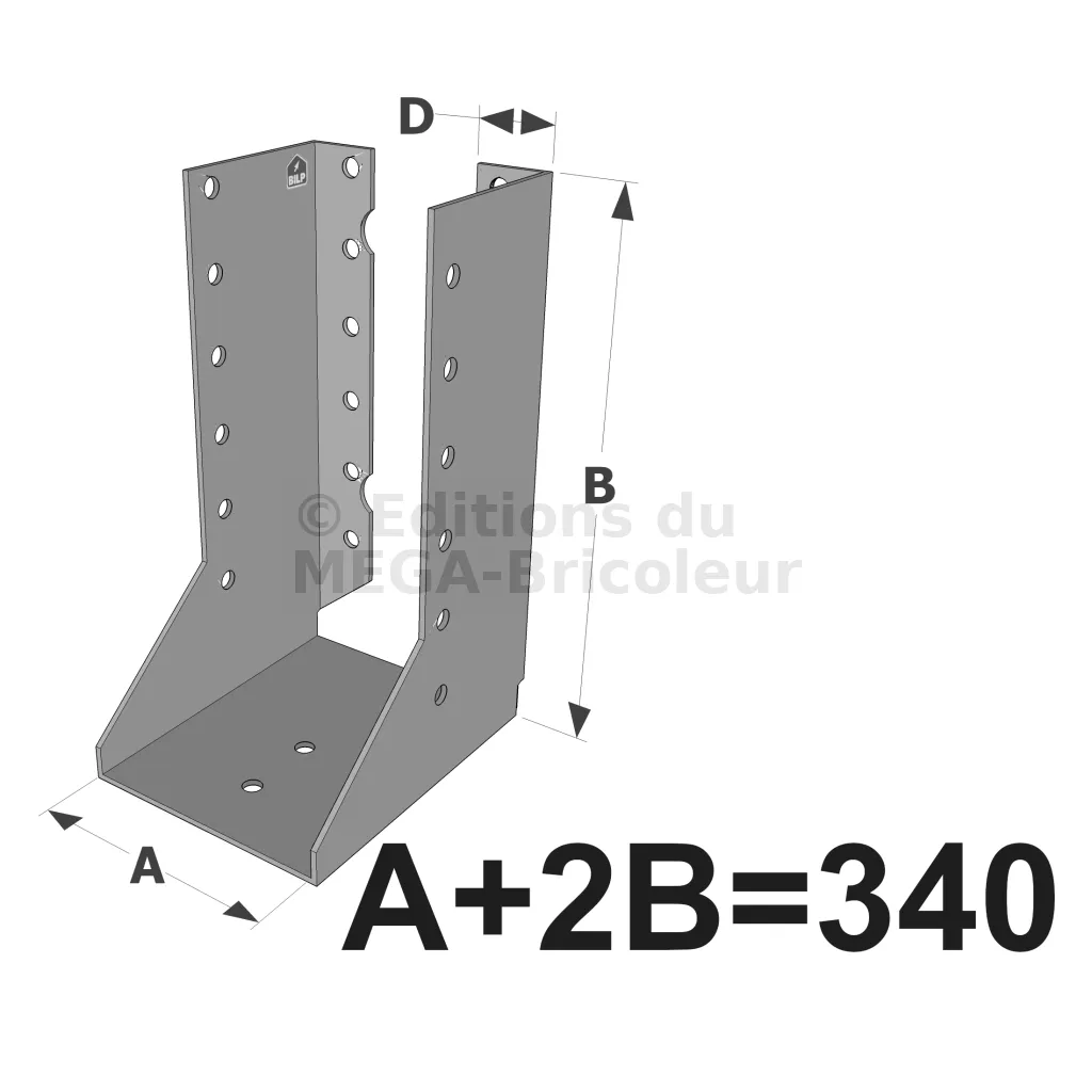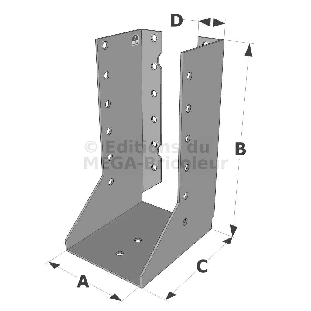Attention, pour les sabots SAIX à ailes intérieures de largeurs inférieures à 80 mm, les ailes sont recoupées sur la hauteur dans l’axe des perçages de boulons. La fixation sur le porteur est donc uniquement possible par pointes ou vis dans la ligne verticale de perçages Ø5 proche du pli.