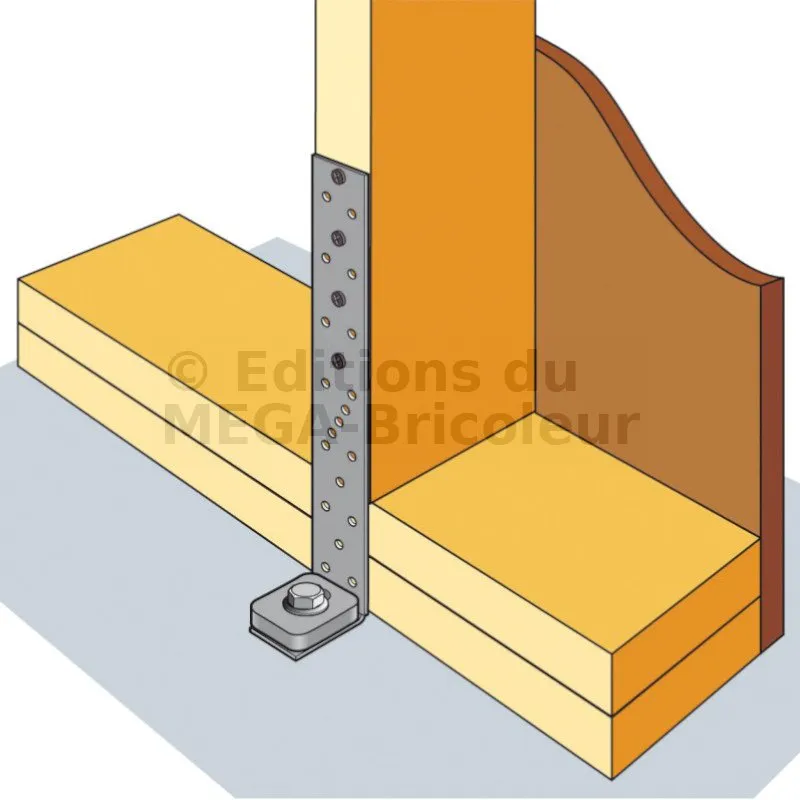 - Permet d‘ancrer solidement le mur ossature bois au sol (préconisé en zone sismique),