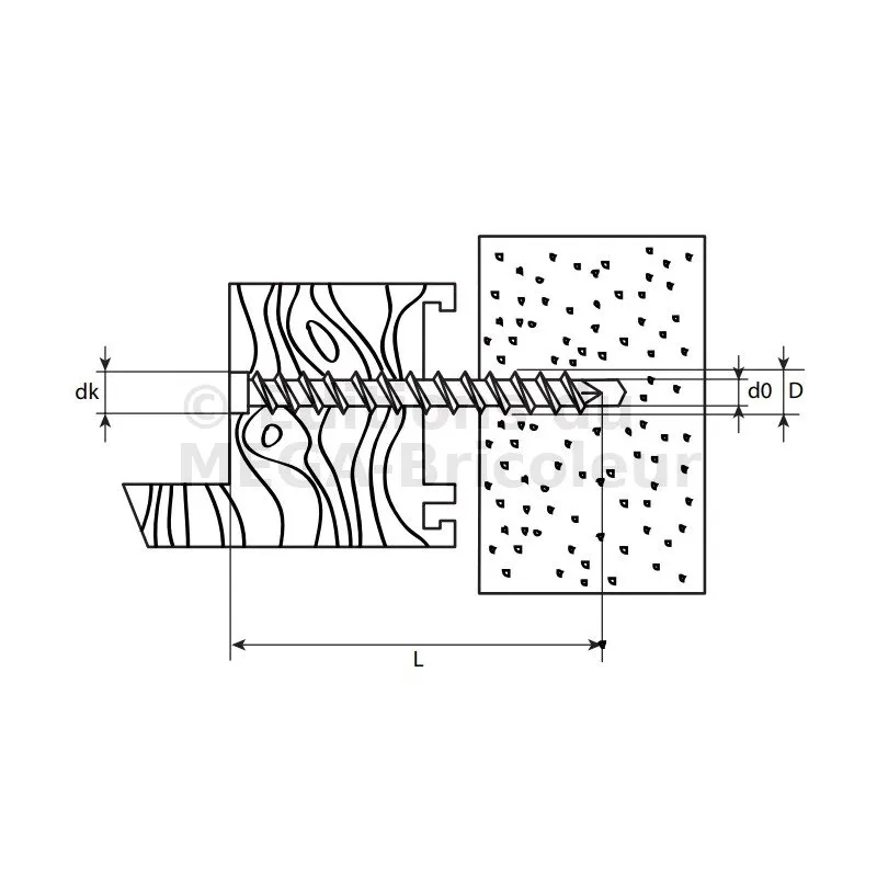 montage encastré dans des profilés bois. Pour une mise en œuvre de profilés en aluminium ou en plastique la vis cadre tête plate ("avec tête") sera plus adéquate. - Montage sans cheville.
