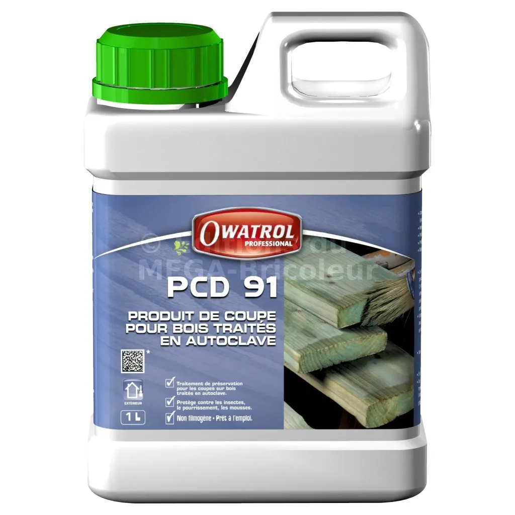 PCD 91 est un produit de protection des abouts des bois traités en autoclave au niveau des coupes et des retouches effectuées pendant leur mise en œuvre en atelier et sur chantiers avant tout produit de protection ultérieur. Il contient un agent de protection du film sec antifongique.