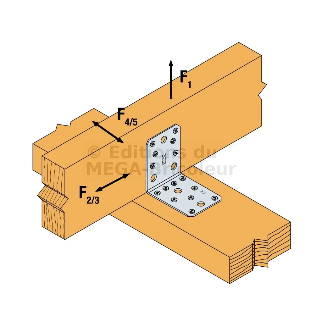 L’équerre renforcée ABR a été développée pour offrir une grande rigidité. Son gabarit permet une grande polyvalence d’applications sur bois.