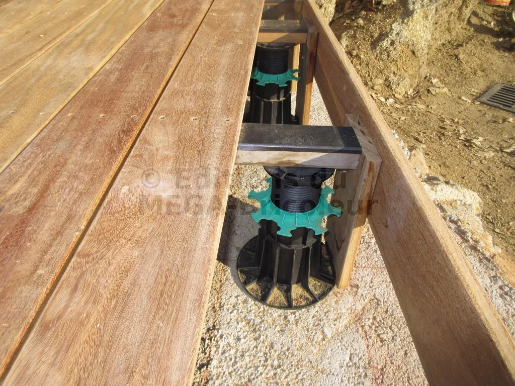 - La structure de la terrasse posée sur plot doit être faite avec des lambourdes avec des matières bois ou métal et non composites.