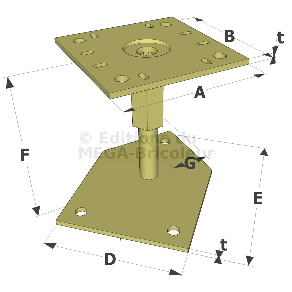ATTENTION : Poteau de section maximale 200 x 200 mm.