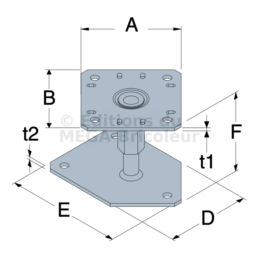 Pied de poteau réglable pour angle de dalle béton