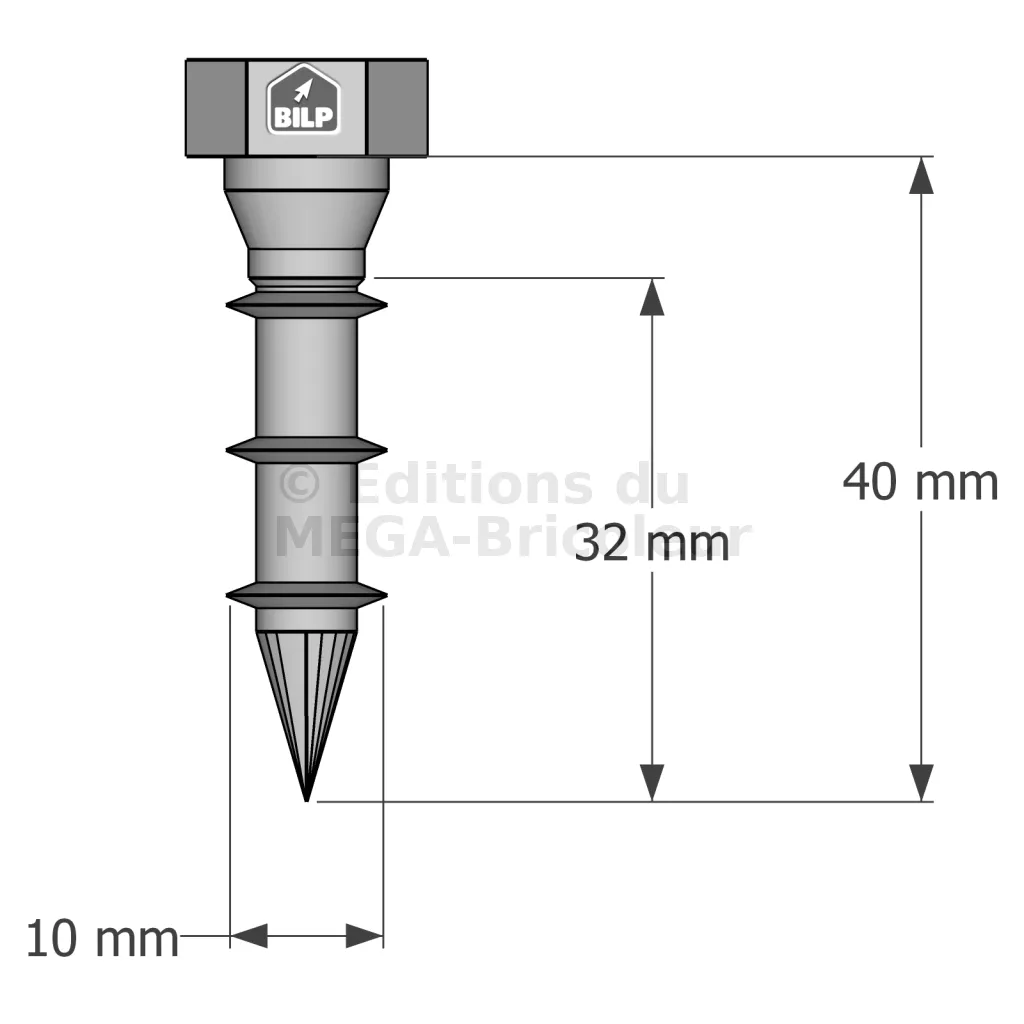 - Marquage de la tête incluant la longueur en mm facilitant le contrôle,