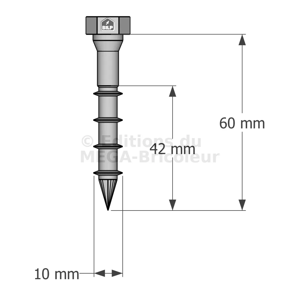 - Marquage de la tête incluant la longueur en mm facilitant le contrôle,