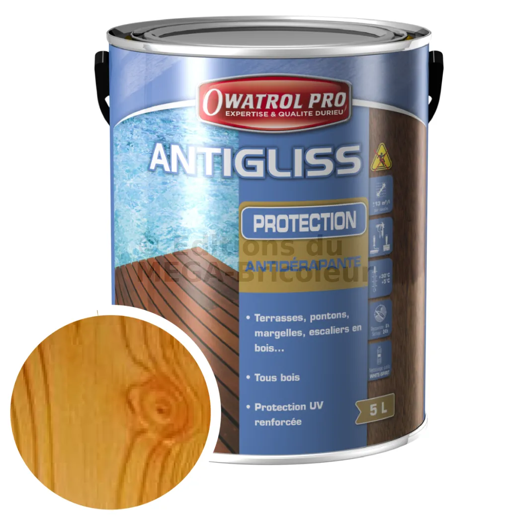 - Protège et décore durablement les ouvrages en bois glissants.