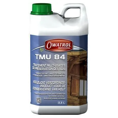 Le TMU 84 NG est un insecticide et un fongicide, facile à appliquer et doté d’une excellente pénétration. Sa formule est enrichie en anti-termites et anti-bleuissement en service. Il est non gras, incolore, sans odeur et non-inflammable.