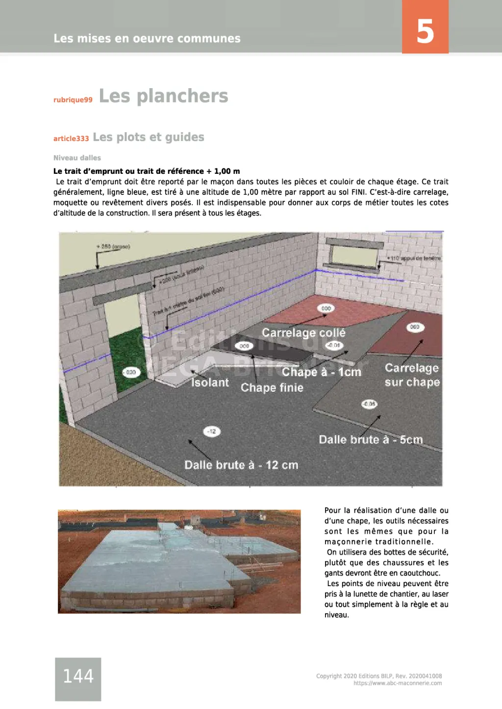 - Leçon 5 : Le trait de niveau + 1,00 m