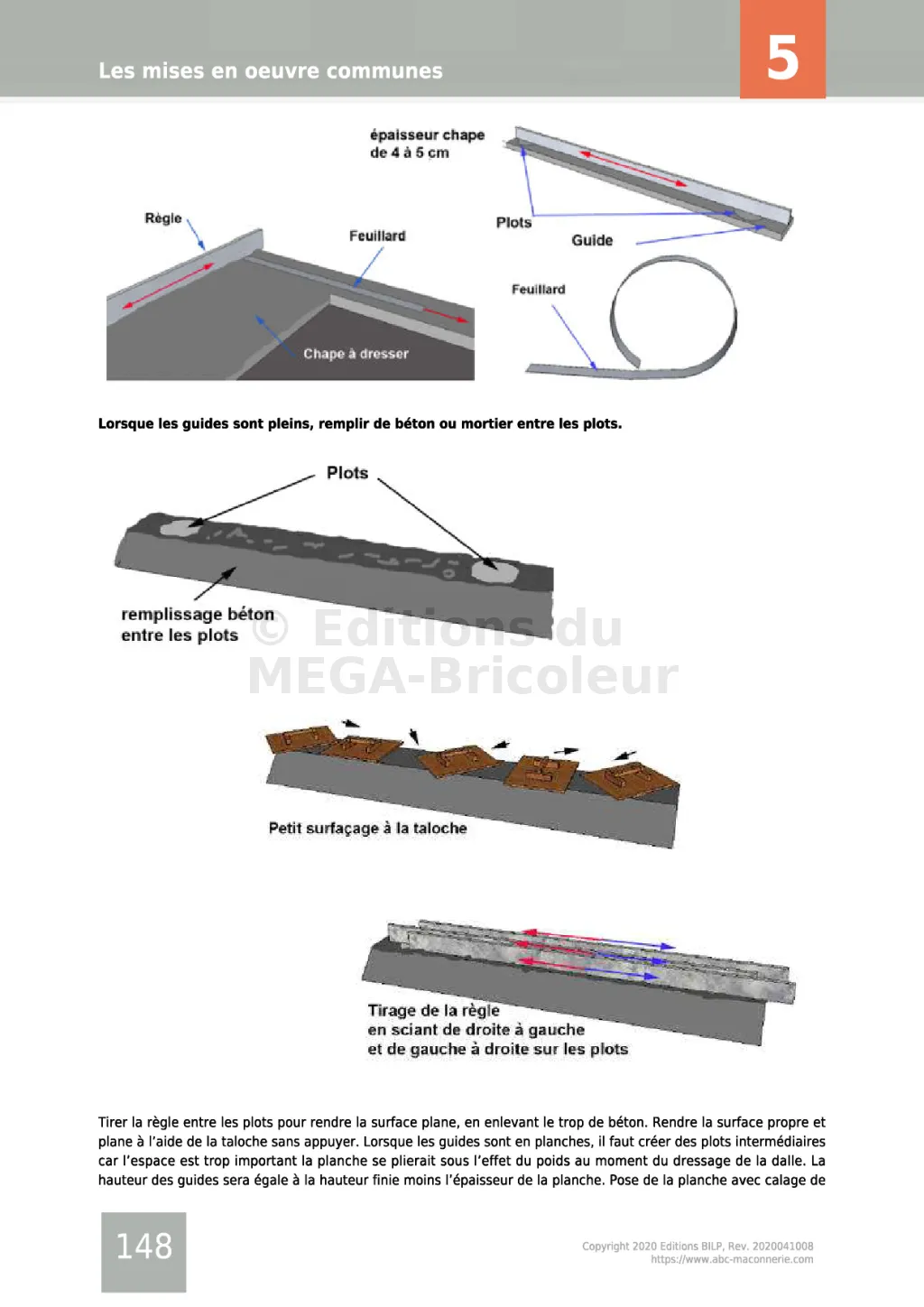 Avec cet ouvrage, vous réaliserez un mur de clôture et ses piliers, des allées avec palier et quelques marches, la réfection d’un dallage d’un appentis, une terrasse, des enduits, des chapes et enfin tous les travaux d’extension et de rénovation et toutes les diverses finitions.