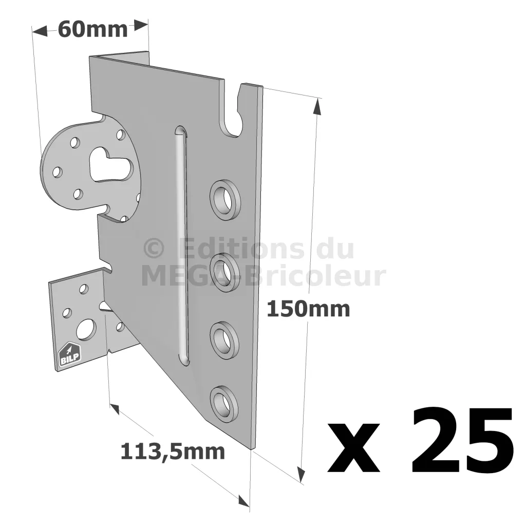 Etrier à âme intérieure à fixer sur le BOIS ou SUPPORT RIGIDE - Réf. CBH150/2.5_25