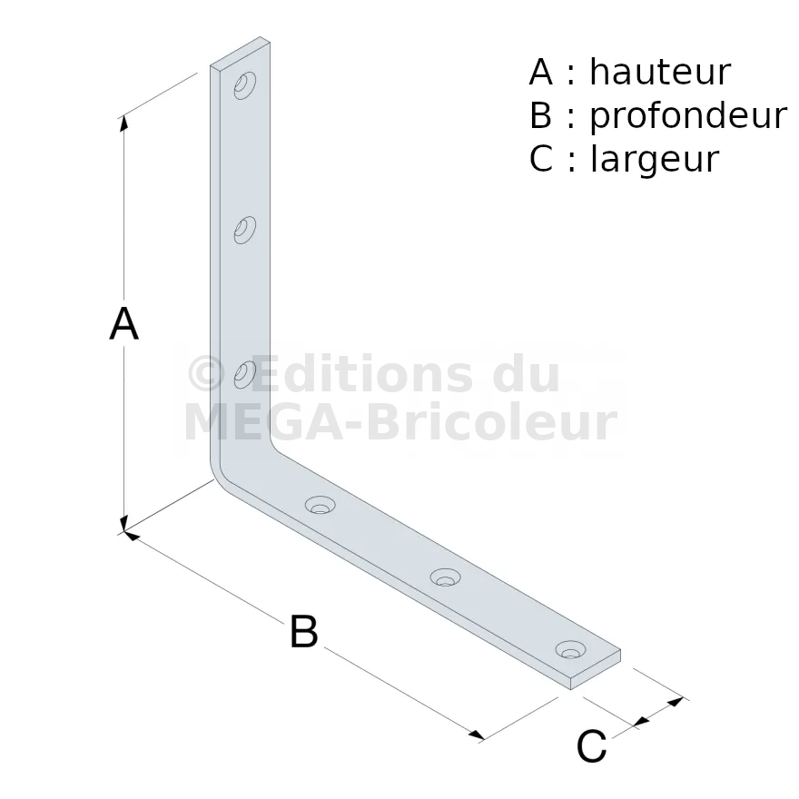 - Perçages fraisés qui permettent aux vis de se fondre dans l‘épaisseur de l‘équerre.