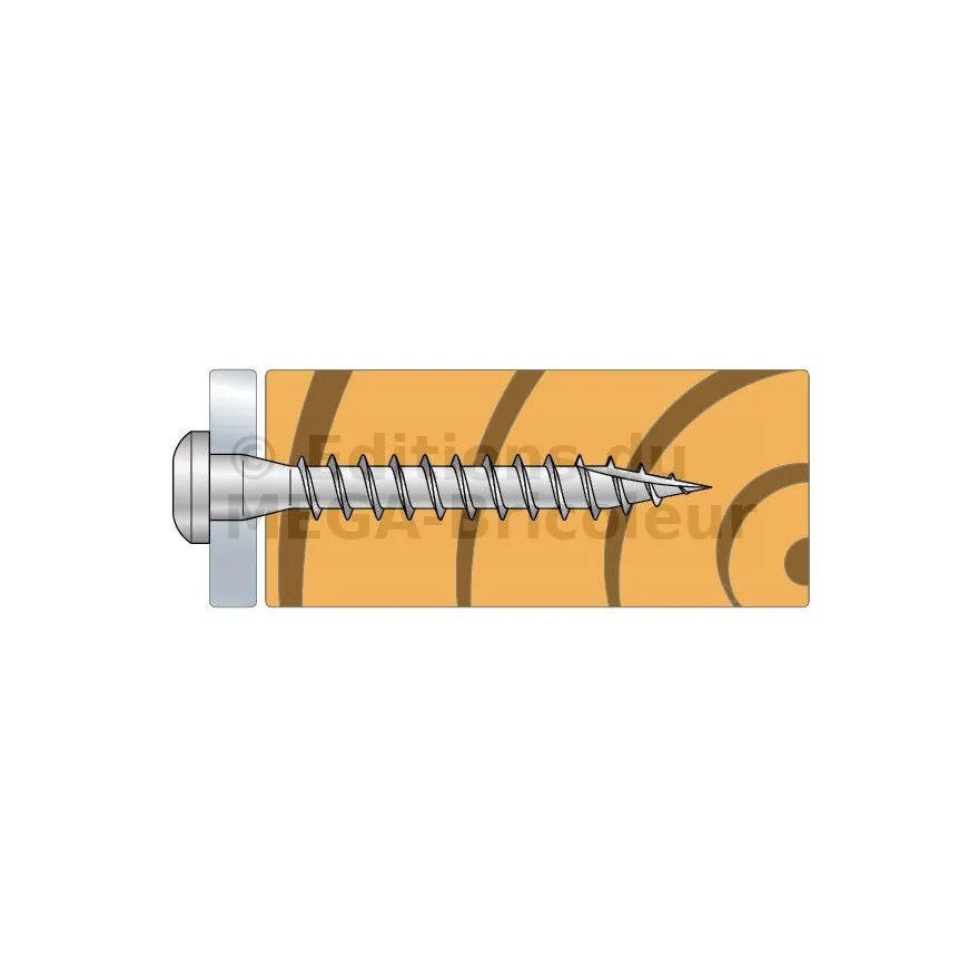 - Le filetage spécifique au bois permet une pénétration facile et rapide dans le bois : pas de fendage du bois,
