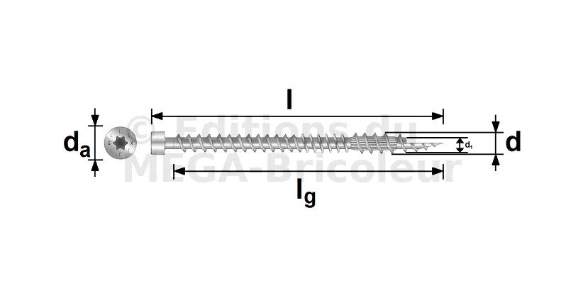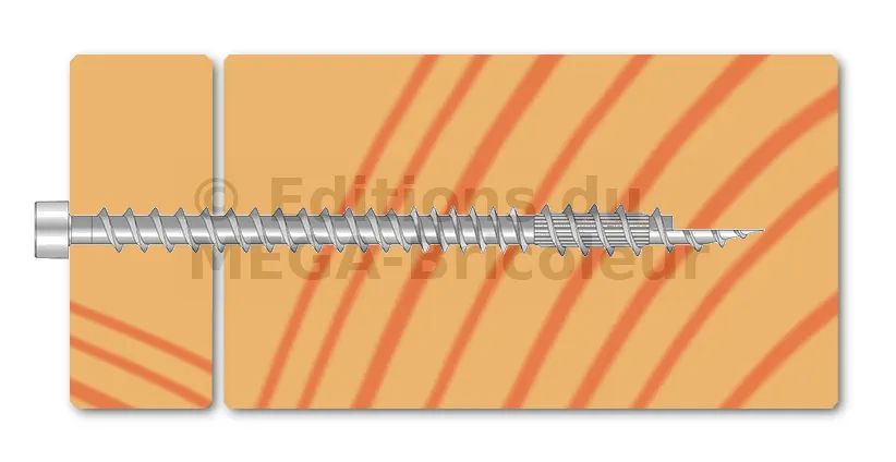 - Tête cylindrique : diminue l’éclatement du bois et rend la fixation invisible dans le bois,