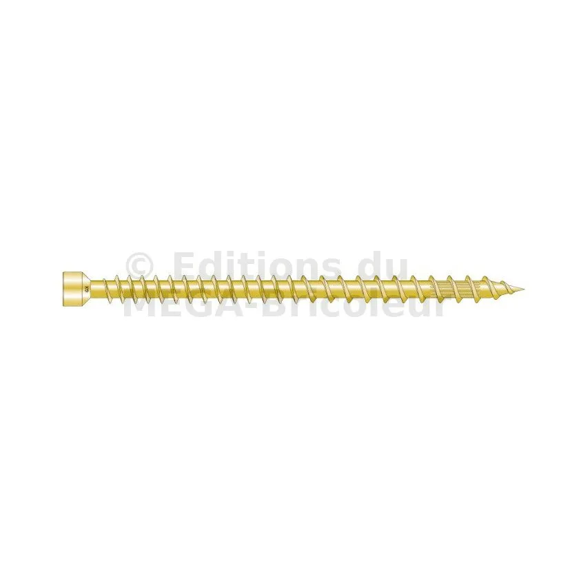 - Tête cylindrique : diminue l’éclatement du bois et rend la fixation invisible dans le bois,