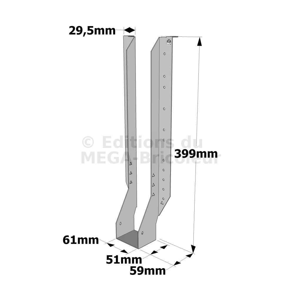 Les étriers à brides latérales IUSE garantissent une mise en œuvre facilitée grâce aux brides supérieures, tout en assurant un maintien de la membrure basse par forte adhérence. Le clouage s’effectue sur les brides latérales après un prépositionnement possible avec le "speed-prong".