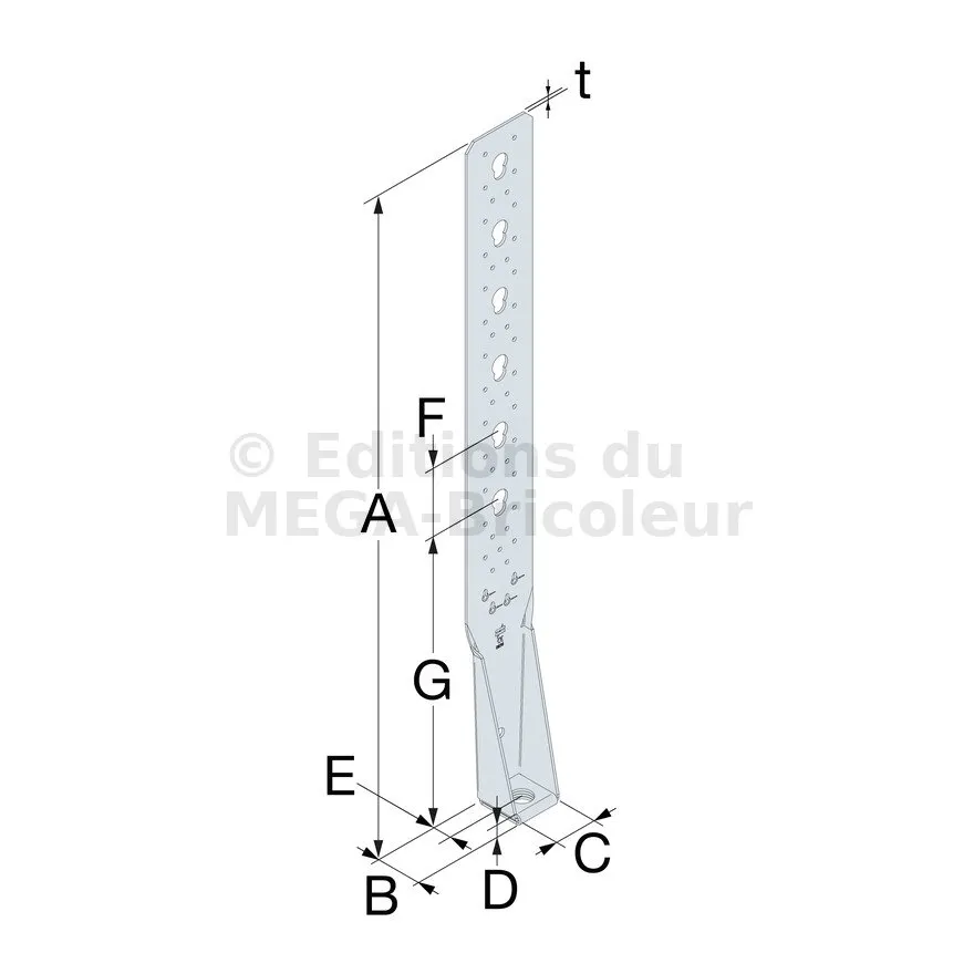 Ancrage pour montant d’ossature 63x558x60mm épaisseur 3mm - Réf. HTT22E