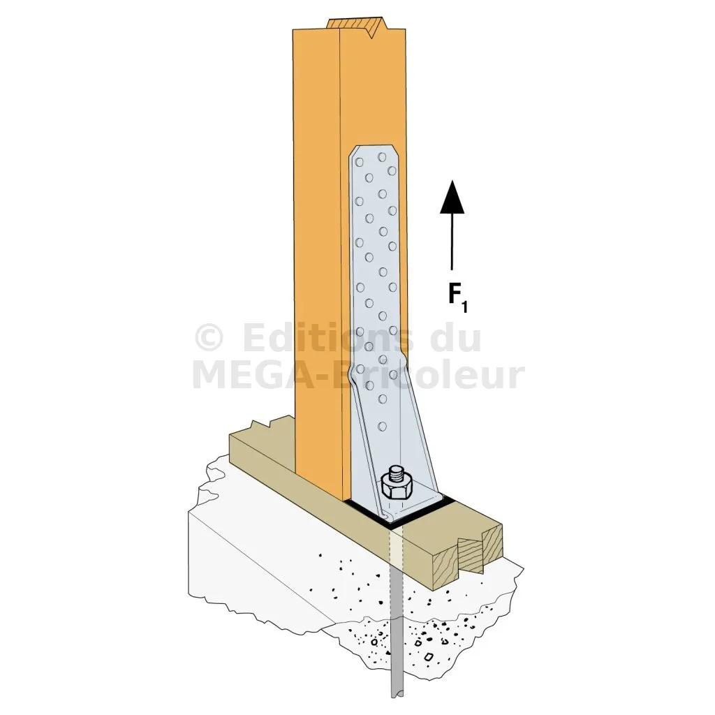 Cet ancrage reprend des efforts de traction dans différentes configurations. Les perçages de pointes permettent d‘adapter la fixation en fonction des configurations : utilisation en travaux neufs, réhabilitation pour le renforcement des structures existantes.