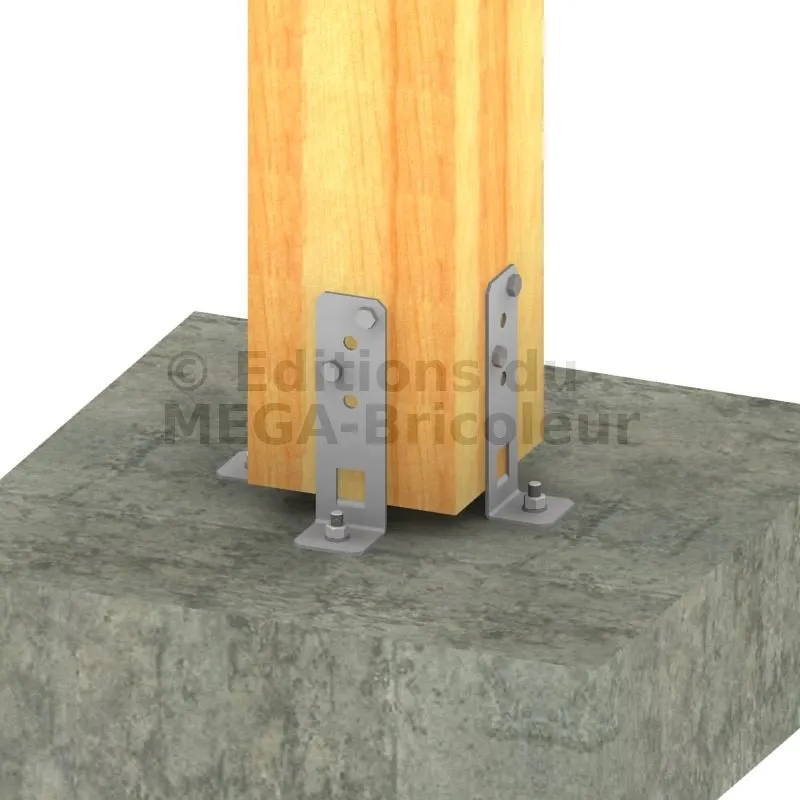 1. Fixer le poteau à 2 ou 4 pieds de poteaux à l’aide des fixations choisies,